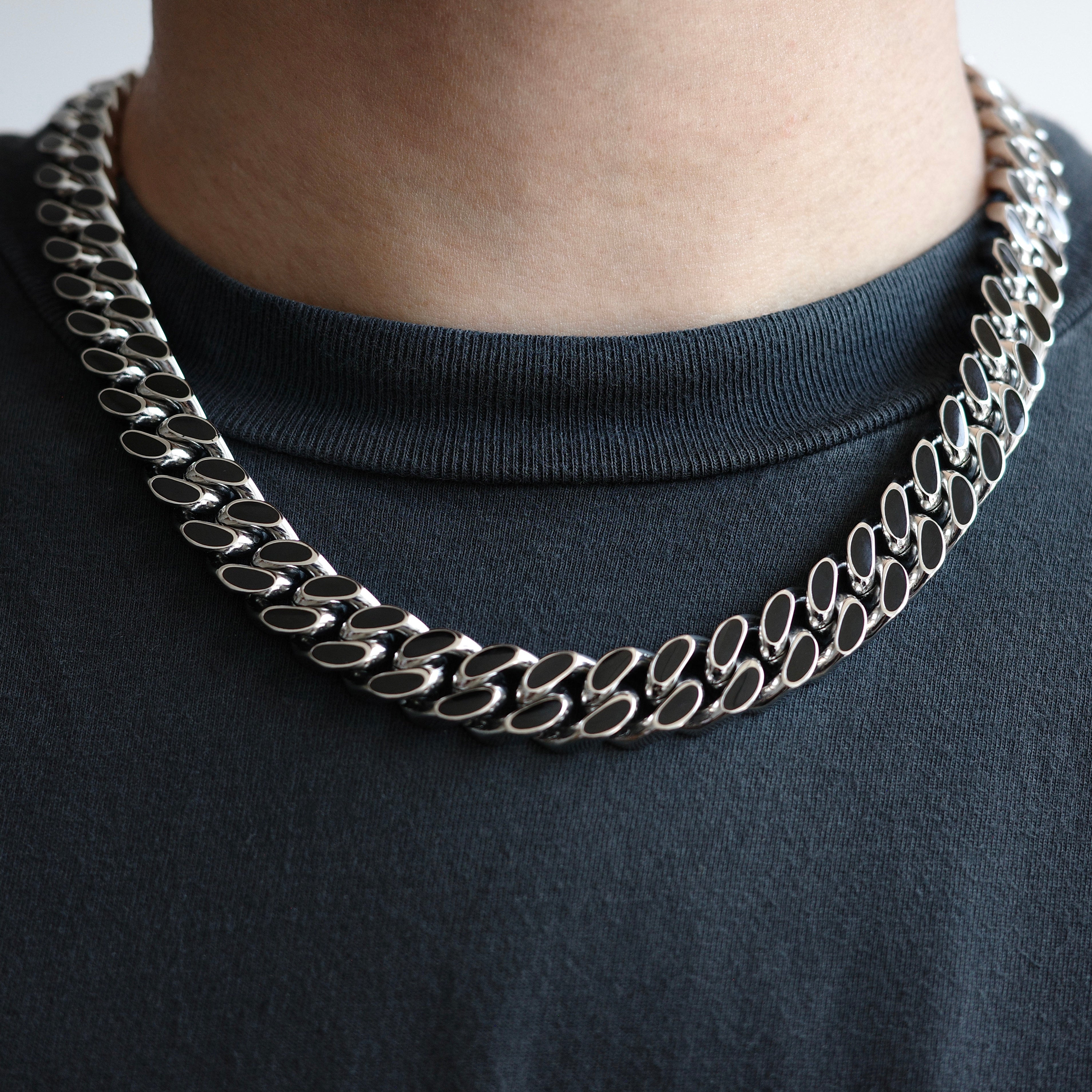 13mm Dark Black Enamel Cuban Chain (Stainless Steel)